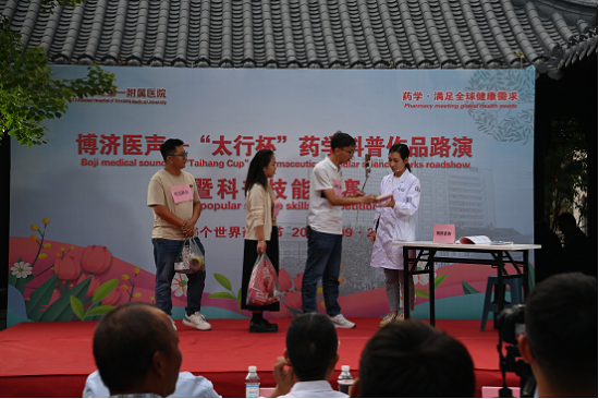 新乡医学院第一附属医院临床药学学部已连续三年成功举办“太行杯”药学科普竞赛。与往年不同的是,今年为了让优秀的科普作品能第一时间被公众“看到”,使更多公众掌握科普知识,也为了进一步拉近药师与公众的“距离”,让公众更好地了解医院药师,技能竞赛现场由以往的会议室,搬到了医院室外的小花园,让竞赛不单单是竞赛,而是真正成为惠及广大人民群众的科普阵地。